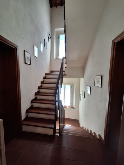 The ground floor features cool, character-rich rooms with lower ceilings, a functional kitchen, and a cozy living area with a fireplace — perfect for relaxed, informal living. The main floor (“piano nobile”) boasts bright, airy spaces with high ceilings and a second fireplace, adding a refined and warm touch to the home.