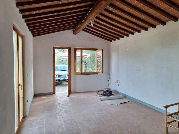 Different areas of the garden are dedicated to relaxation, in front of the main villa and in front of the adjoining two-room apartment with chairs and sofas strategically positioned to enjoy the panoramic view of Monte San Savino and the surrounding countryside. On the property are three houses/sheds and oven to be mentioned a part from the charming main building.